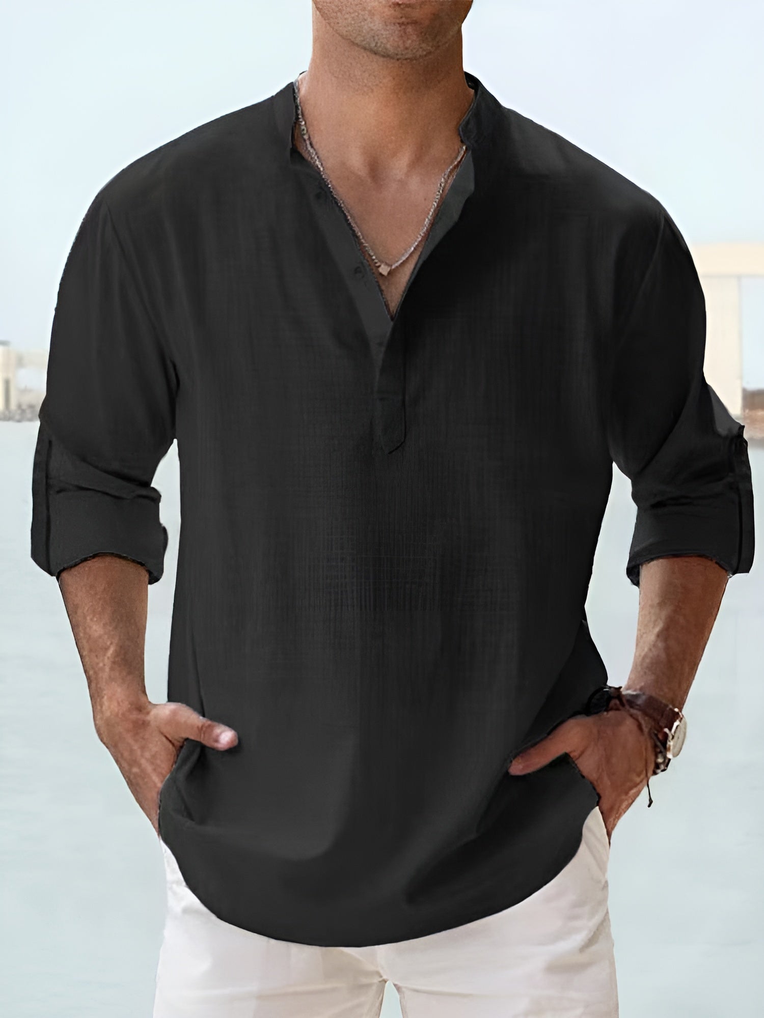 Imagine-toi lors d’une chaude journée d’été : tu marches en toute confiance, protégé par la fraîcheur naturelle du lin. Avec son allure raffinée et son confort inégalé, la chemise Aurélien™ devient vite ton allié indispensable, que ce soit pour une sortie décontractée ou un rendez-vous élégant.