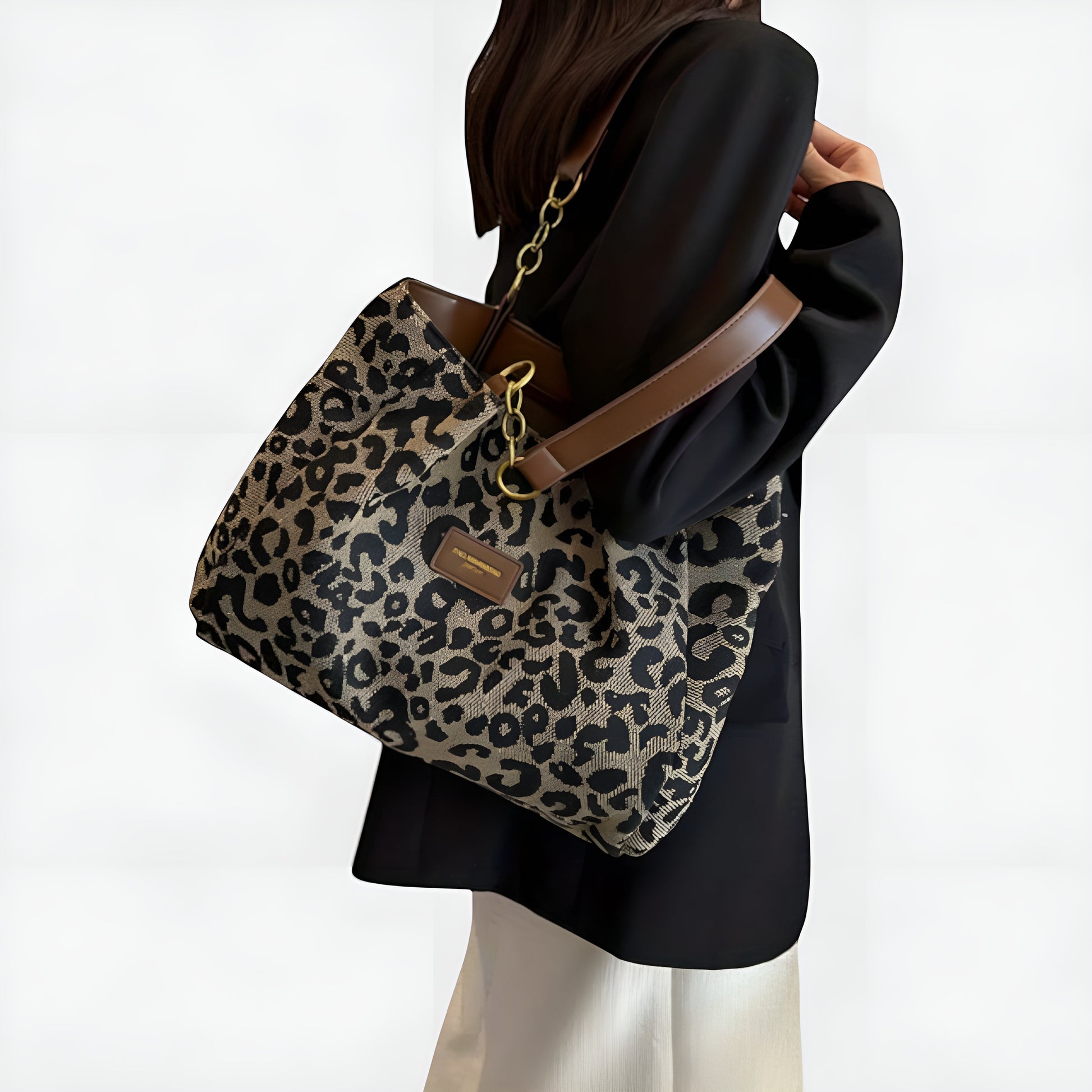 Avec son imprimé léopard chic et son format spacieux, Maëlle™ est bien plus qu’un simple sac : c’est ton allié du quotidien. Que ce soit pour une journée de travail, une virée shopping ou une escapade le week-end, elle t’accompagne partout avec style et praticité.